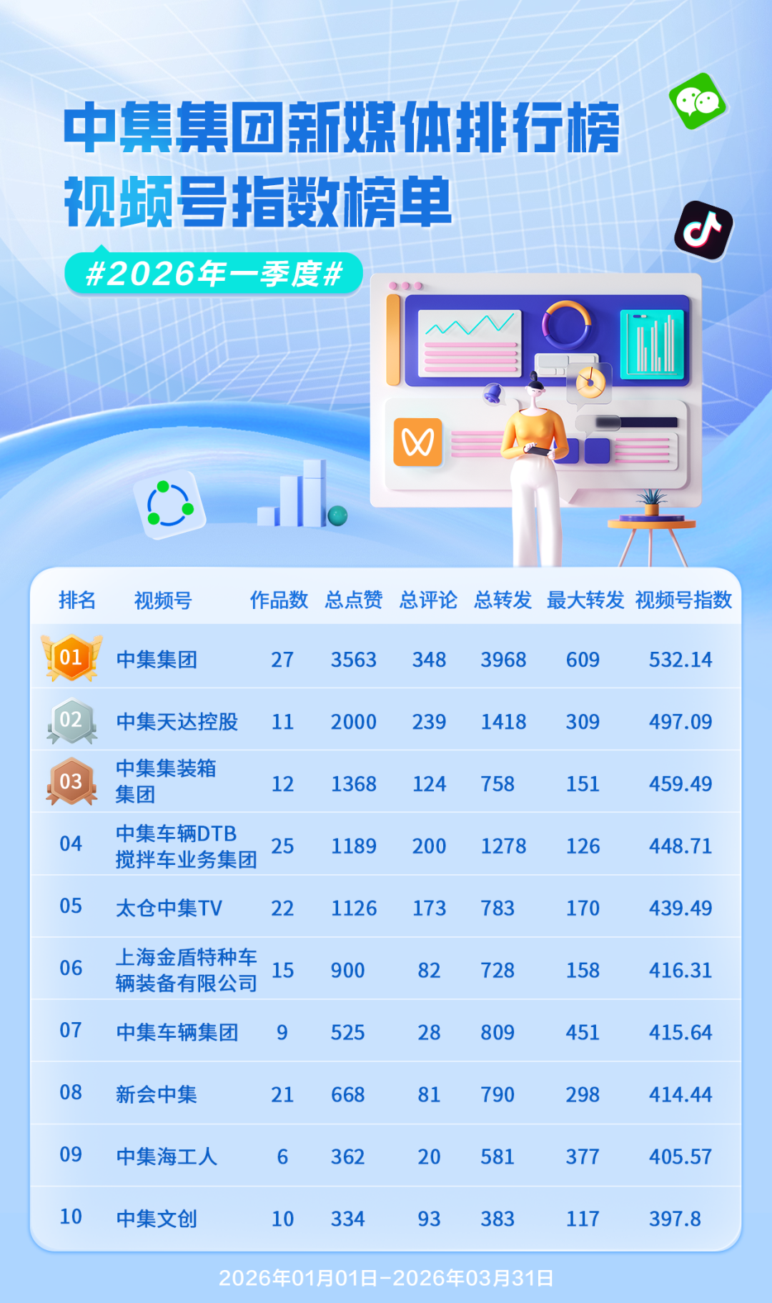 中集2026年一季度新媒体排行榜:公众号头部稳定、多账号逆势上涨,视频号持续激发创新活力