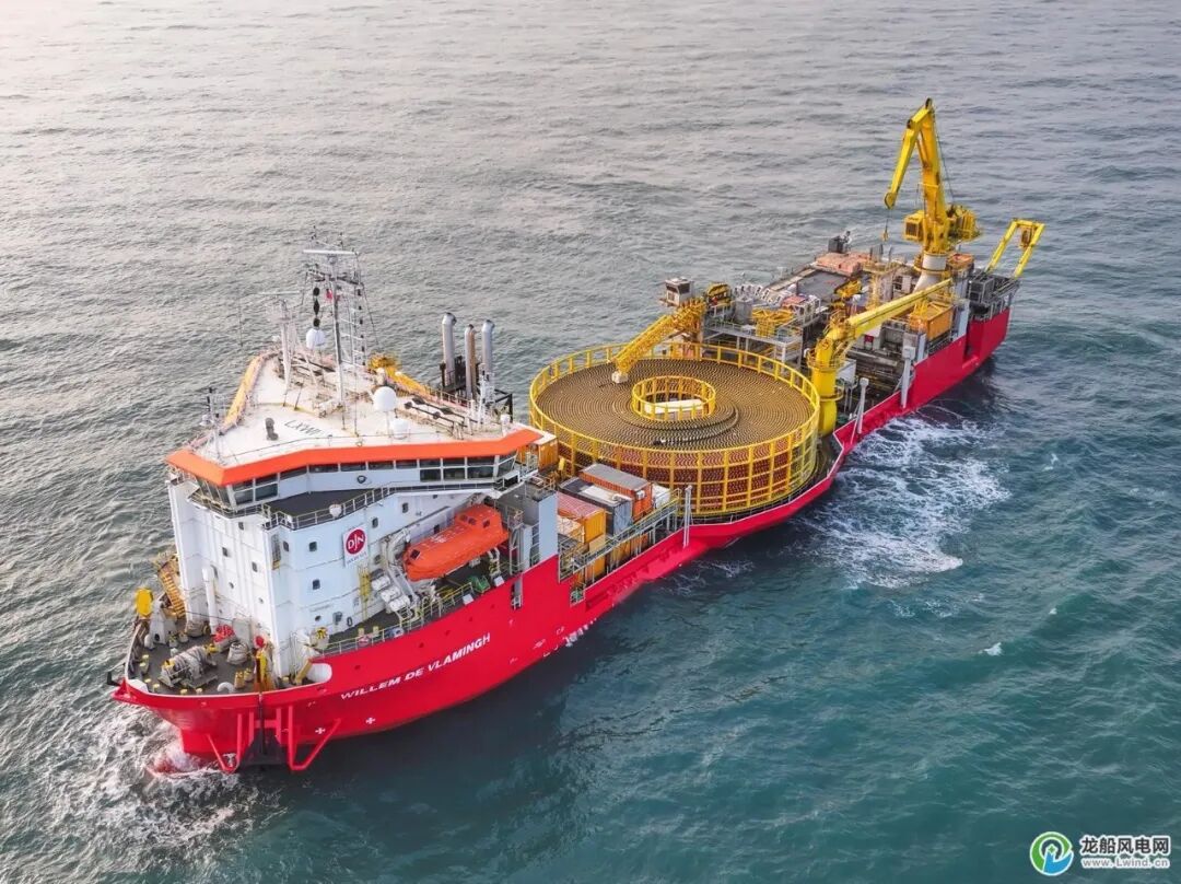 这两条电缆长度分别为45公里和44公里,总重超过8000吨,目前已全部铺设完毕,静待海上变电站安装就位。此次施工由电缆铺设船“Willem de Vlamingh”号负责。