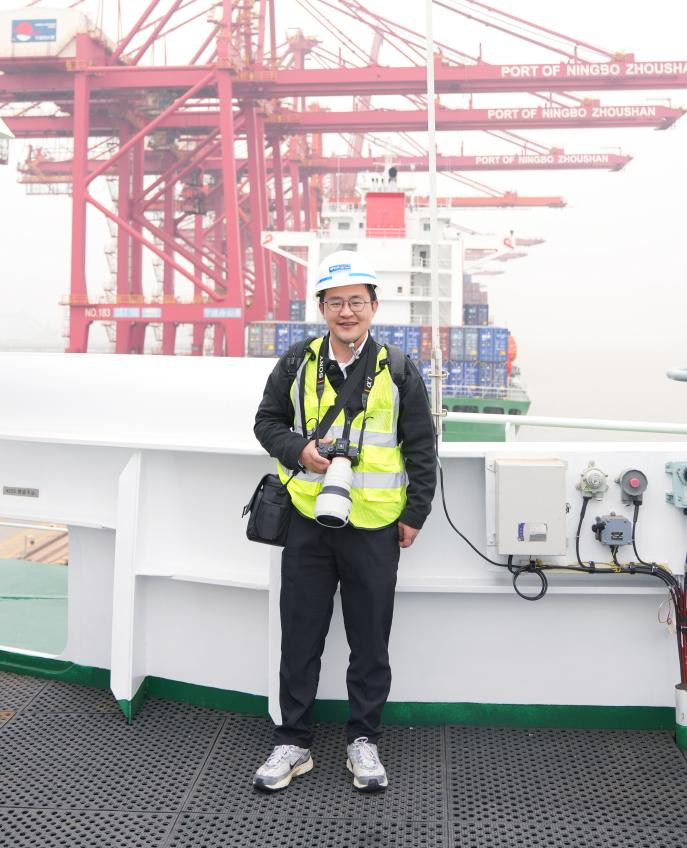 “作为本次首航活动媒体接待团的一员,我与团队小伙伴们坚守在幕后,与各大媒体沟通对接,紧锣密鼓地做好各项服务保障工作。工作间隙,我们纷纷在“宁远电鲲”轮边打卡留念。”媒体接待团成员戎波平回忆道。活动结束后,大家看着各大媒体发布的报道,集体荣誉感和工作成就感爆棚。