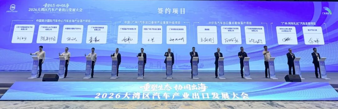 大会完成两轮重点项目签约,分别聚焦大湾区汽车产业协同以及港口战略合作等领域,进一步夯实汽车出海全链条服务底座,打造高效便捷的出海服务体系,推动产业载体在广州南沙落户,全面激活产业动能。