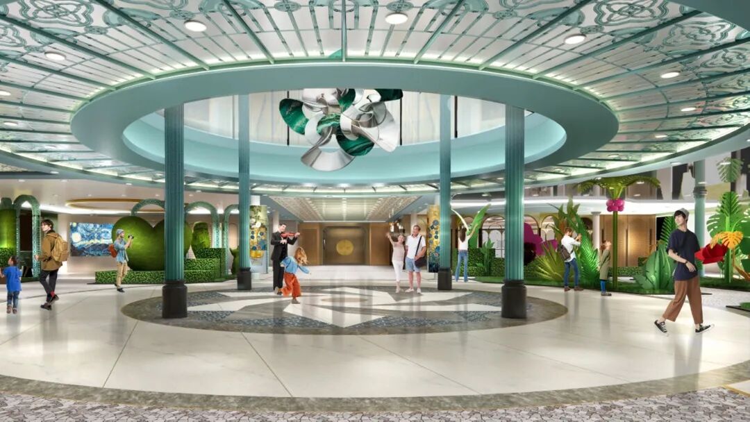 爱达·花城号船名灵感取自“花城”广州,创新打造了以“花卉”为设计主线的全天候海上休闲空间——花城广场。船上的400余件花城主题艺术装饰品,巧妙融合了十二月令花卉、海丝沿线国花、文人雅趣等元素。