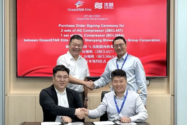 4月20日,OceanSTAR Elite(OSE)与沈阳鼓风机集团股份有限公司在新加坡举行签约仪式,正式为Sepat浮式生产储卸油装置(Sepat FPSO)项目签署采购协议,采购2台AG型(2BCL457)、1台GIGL型(BCL306A)压缩机。