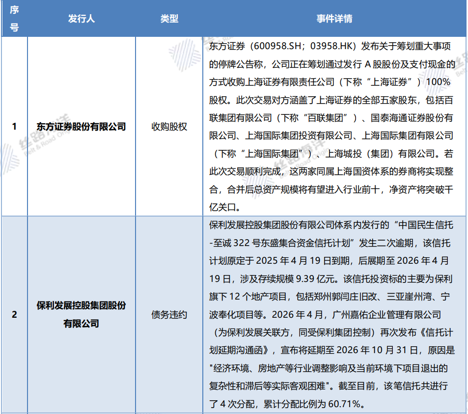 债市观澜 ‖ 东方证券拟并上海证券;保利旗下信托再逾期等(4月21日)