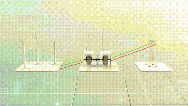 该产品应用于江苏盐城大丰4.5兆瓦低频风机送出示范项目,是电力输送领域世界首个铁磁型旋转变频系统,该设备安装在海上风电集群的并网升压站内,可实现海上风电稳定并网。