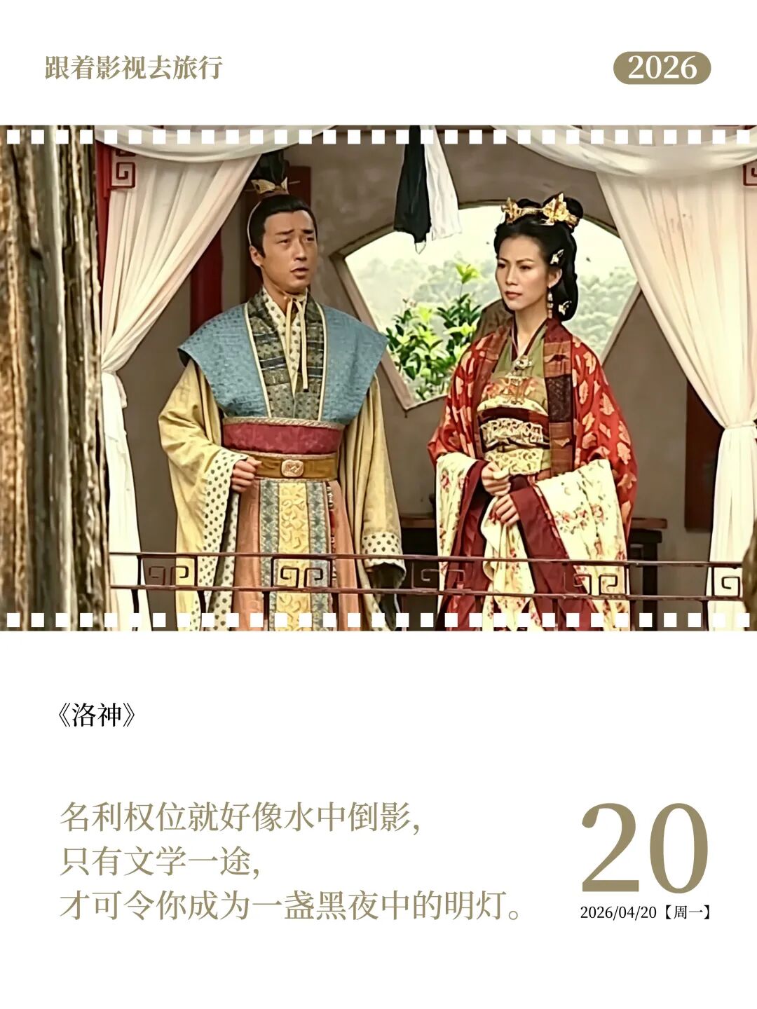 一屏光影,万里山河。当前,文化和旅游部深化文旅融合发展,将“跟着影视去旅行”作为创新业态、扩容消费的重要抓手,解锁文旅新体验、释放消费新潜能,更好满足群众美好生活向往。因一部影视赴一座城,已成大众出行新风尚。为此,文旅中国特别策划“跟着影视去旅行”专题,以镜头为引赴山河之约,以旅行为笔绘人间四时,于光影流转间,漫步诗意中国。