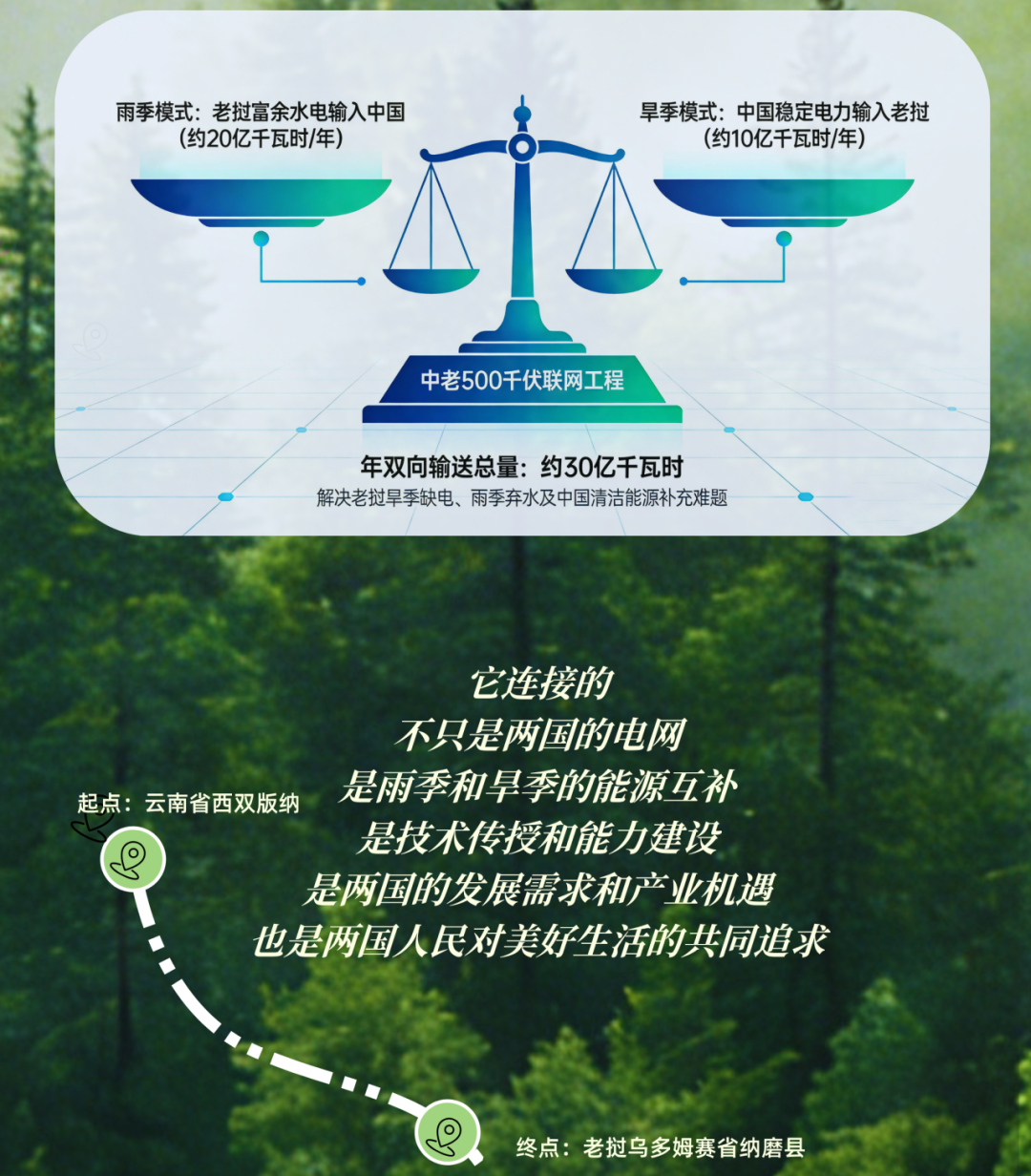 这条看不见的电流,承载着看得见的发展与希望。中老500千伏联网工程不仅实现两国能源季节互补、优势互通,更搭建起技术交流、产业合作的桥梁,衔接起中老两国的发展机遇与民生期盼。电流穿梭传递光明与动能,而在工程建设中凝结的友谊、信任与携手前行的信念,更将成为中老命运共同体建设的长久动力。