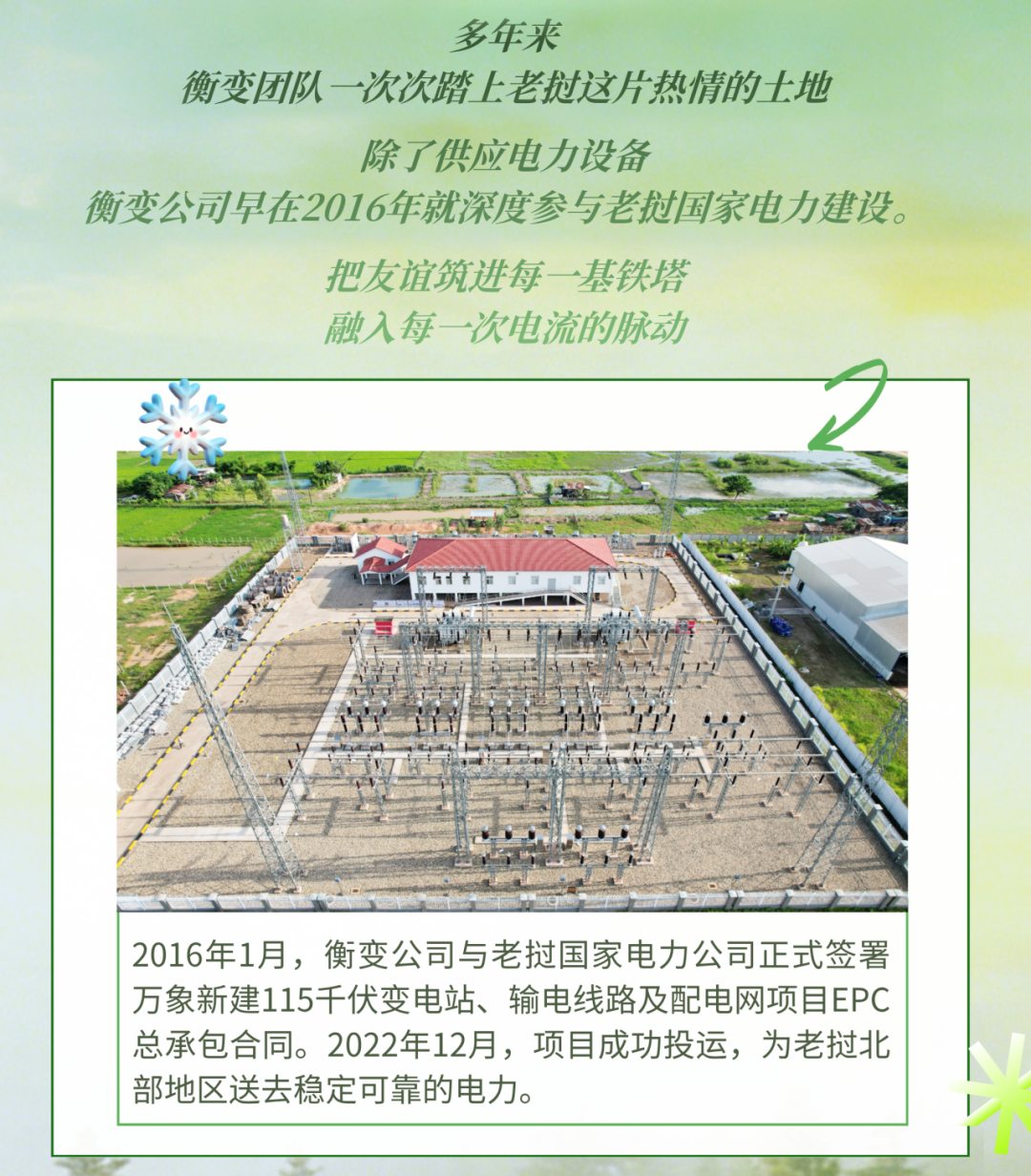 深耕老挝电力市场多年,特变电工早已成为中老电力合作的重要参与者。2016年,特变电工与老挝国家电力公司签署万象115kV变电站、输电线路及配电网EPC总承包项目,这一重大民生工程于 2022年12月顺利投运,为老挝北部送去稳定电力,成为中老基础设施互联互通的典范,为双方深化能源合作、助力 “一带一路” 高质量发展奠定坚实基础。