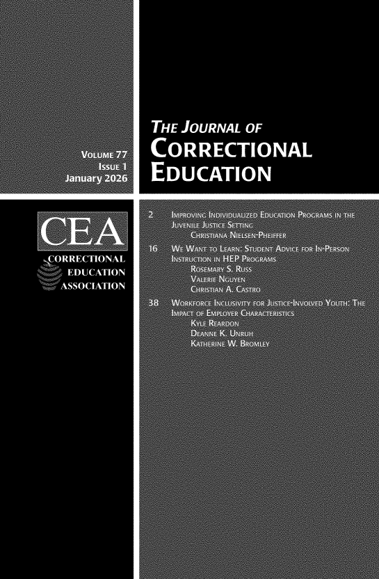 《矫正教育杂志》是矫正教育协会的旗舰出版物,也是该领域最重要、创刊最早且被引用最广泛的学术期刊。每期内容涵盖历史与学术研究、教育工作者实践指南,以及对当前议题与立法重点的深度解析。