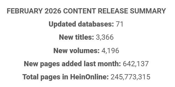 HeinOnline每月新增期刊介绍丨2026年2月和3月