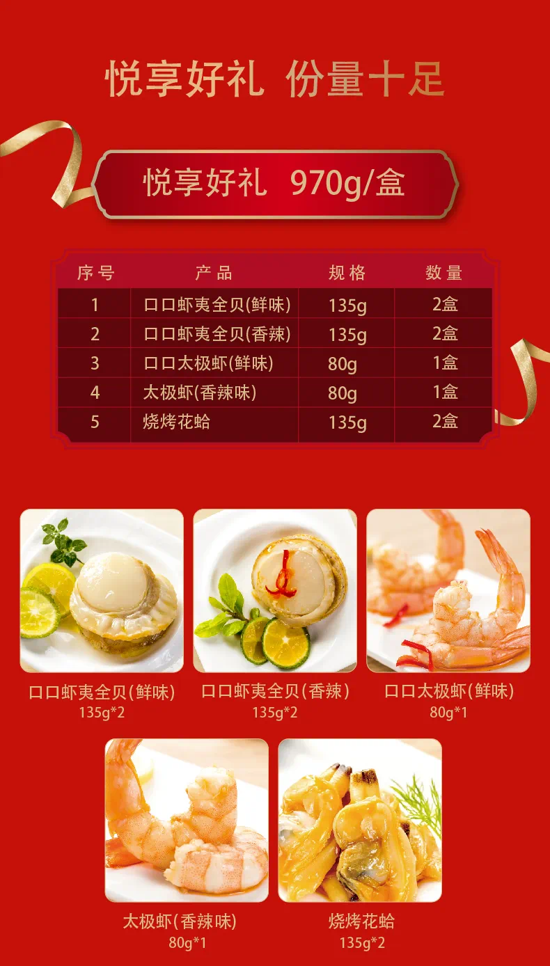 为了锁住海鲜的美味与营养,产品采用国际先进的新含气调理技术,更能完整保留海鲜的原汁原味,开袋即食。礼盒精选足量搭配,兼具体面与实用,是家庭欢聚、旅途休闲的理想选择,更是走亲访友的品质好礼。