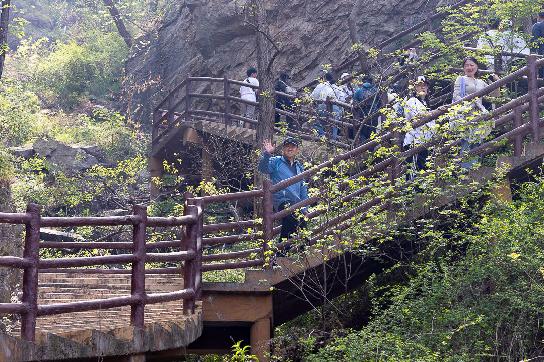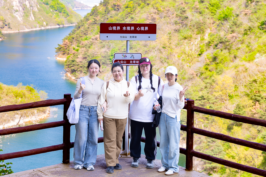 抵达景区后,青年员工结伴而行、携手共进。漫步山间,大家在欣赏春日盛景的同时,主动互帮互助:体力较好的同事搀扶同伴、分享补给,不同单位、不同岗位的员工深入交流,打破部门壁垒,在自然美景中增进了解、凝聚情谊。登临高处,远眺群山叠翠,大家意气风发、合影留念,用镜头定格属于明月青年的团结风采。