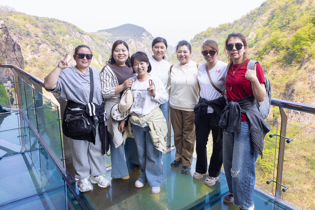 午后,大家一同徒步5公里峡谷、穿行山水间,在亲近自然中舒缓压力、放松心情,更深刻体会到团队协作的重要意义。在体验高空玻璃栈道时,面对内心恐惧,大家没有退缩,而是相互鼓励、携手前行,从胆怯到勇敢,从独自前行到结伴互助,充分展现了明月青年不惧挑战、团结协作、彼此支撑的精神风貌。