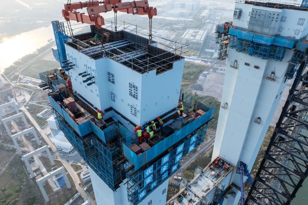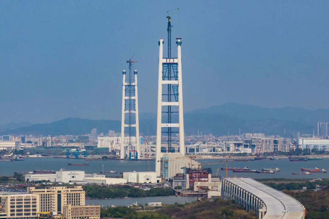 狮子洋大桥东、西主塔双双封顶