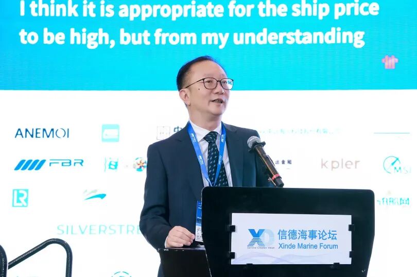 山东海运股份有限公司总经理徐涛发表了题为“Shipping Cycles: Opportunities, Pressures, Strategies(航运周期:机遇、压力与策略)”的演讲。徐涛认为船厂和航运公司面临三大不确定性:未来船舶动力能源未知、地缘政治风险、碳税成本压力。当前船价看似偏高但实际相对合理,市场终会周期性下跌,关键是景气期还能持续多久(3-5年或更长)。他给出应对策略表示坚持长期服务客户、加快船队迭代、增强抗波动能力、快速适应市场变化。核心是在不确定环境中保持企业韧性。