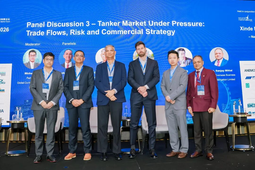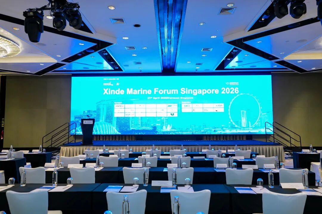 (信德海事网讯)4月21日,由信德海事网主办的第四届信德海事新加坡论坛(Xinde Marine Forum Singapore 2026)在新加坡费尔蒙酒店成功举办。本次论坛以“Navigating Disruption, Setting a New Course(乘风破浪,启航新程)”为主题 ,吸引了来自全球航运产业链的贸易商、船公司、船管公司、船级社、船厂、经纪公司、金融及保险机构等200位多代表齐聚一堂,围绕集装箱航运新平衡、干散货市场新格局、油轮市场风险与策略以及航运投资重塑等热点话题展开深度讨论与智慧碰撞。