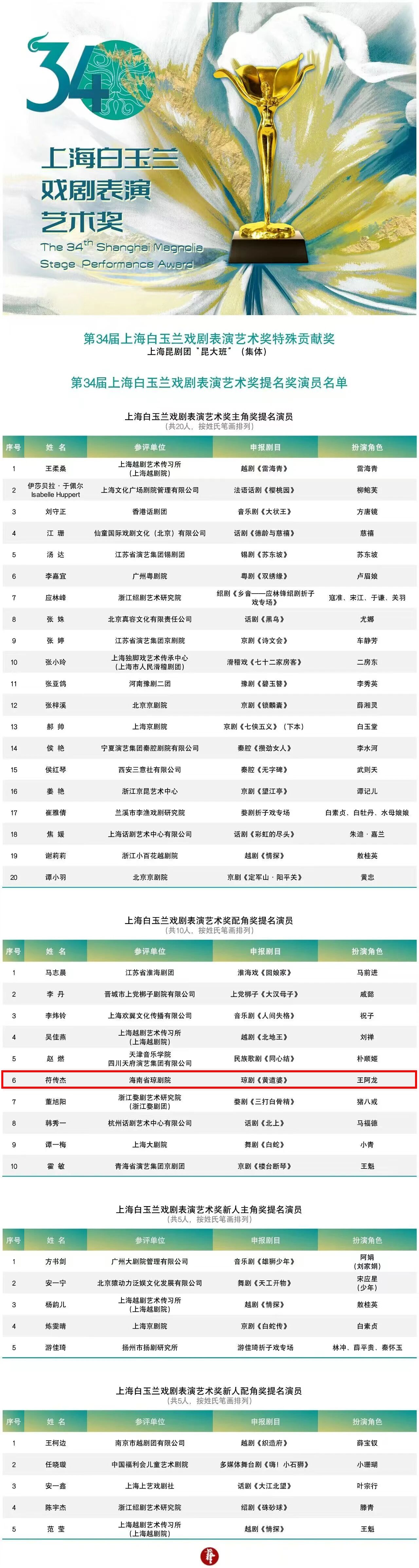 琼剧“开”出“白玉兰”!海南演员首次获白玉兰戏剧表演艺术奖提名奖