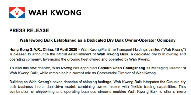近日,华光海运控股有限公司宣布成立华光散运有限公司,计划到2030年将新公司的船队规模扩充至50至60艘,其中30艘为自有船舶,主要船型为Ultramax型和Kamsarmax型散货船,用于运输谷物、矿石和铝土矿贸易等物品。
