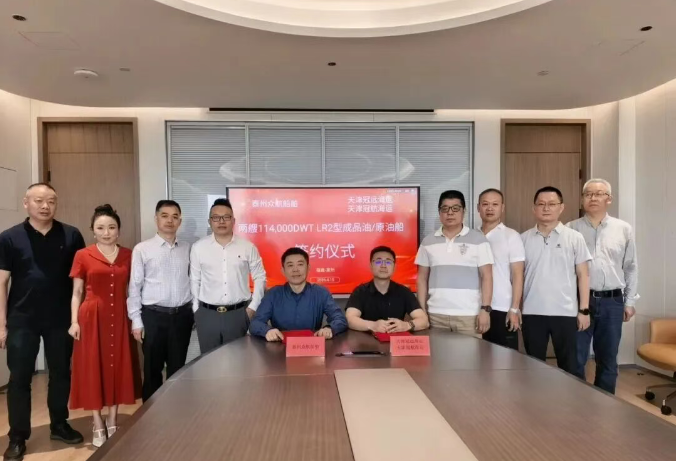 近日,天津冠远海运有限公司与天津冠航海运有限公司与泰州众航船舶有限公司签订2艘11.4万载重吨LR2型成品油/原油兼用型油船建造合同,预计分别将于2029年3月、6月交付。