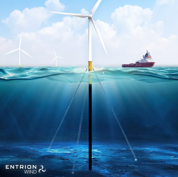 Entrion Wind公司的专利设计,通过创新结构将单桩基础的应用水深拓展到60至120米。