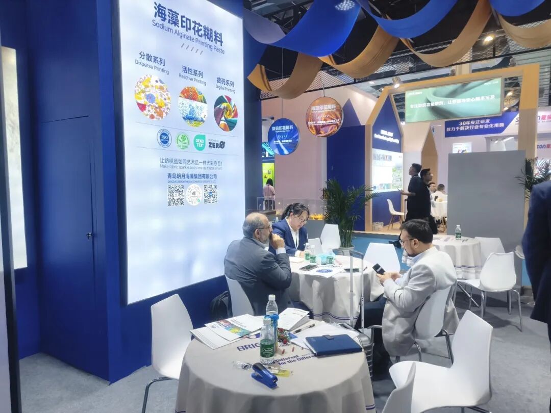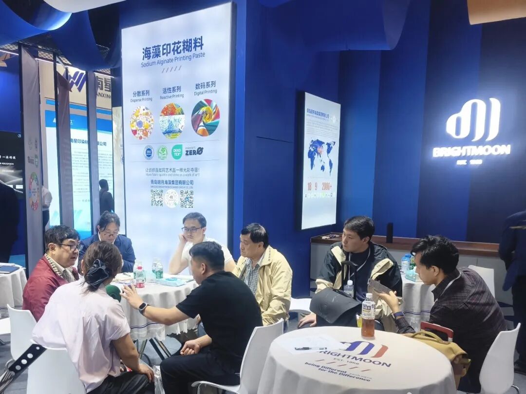 展会期间,明月展位吸引了众多海内外客户驻足交流。围绕产品性能、应用工艺及定制化需求,团队与客户展开深入沟通,从单一产品介绍延伸至整体解决方案探讨,进一步强化了明月在海藻基印染材料领域的专业认知与合作信任。从一棵海藻出发,走向印染产业链关键环节,明月始终以技术创新驱动应用升级。未来,明月将持续深耕海藻功能材料领域,推动绿色印染技术发展,赋能行业实现高质量与可持续发展的协同发展。