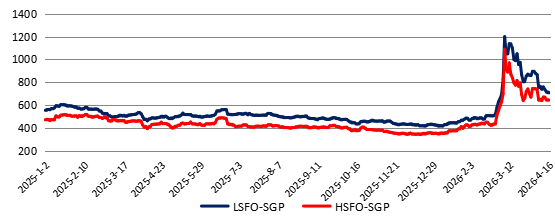 上周新加坡高硫380cst燃料油均价652.8美元/吨,较前一周均价下跌29.2美元/吨,0.5%低硫燃料油均价723.6美元/吨,较前一周均价下跌76.8美元/吨。