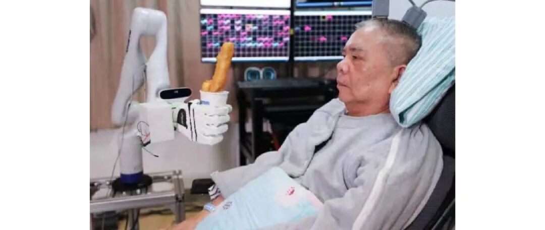 我国侵入式脑机接口研究起步较晚,且受制于手术风险、伦理监管和临床资源条件,能够开展人体植入研究的团队数量相对有限。近年来,少数高校与医院联合团队已在该领域实现关键突破。浙江大学较早开展临床探索,2020年在国内首次在高龄高位截瘫患者颅内植入电极,实现意念控制机械臂,可进行复杂运动控制(图2),是国内首个应用植入式脑机接口结合外部设备辅助患者进行主动运动康复的临床研究。