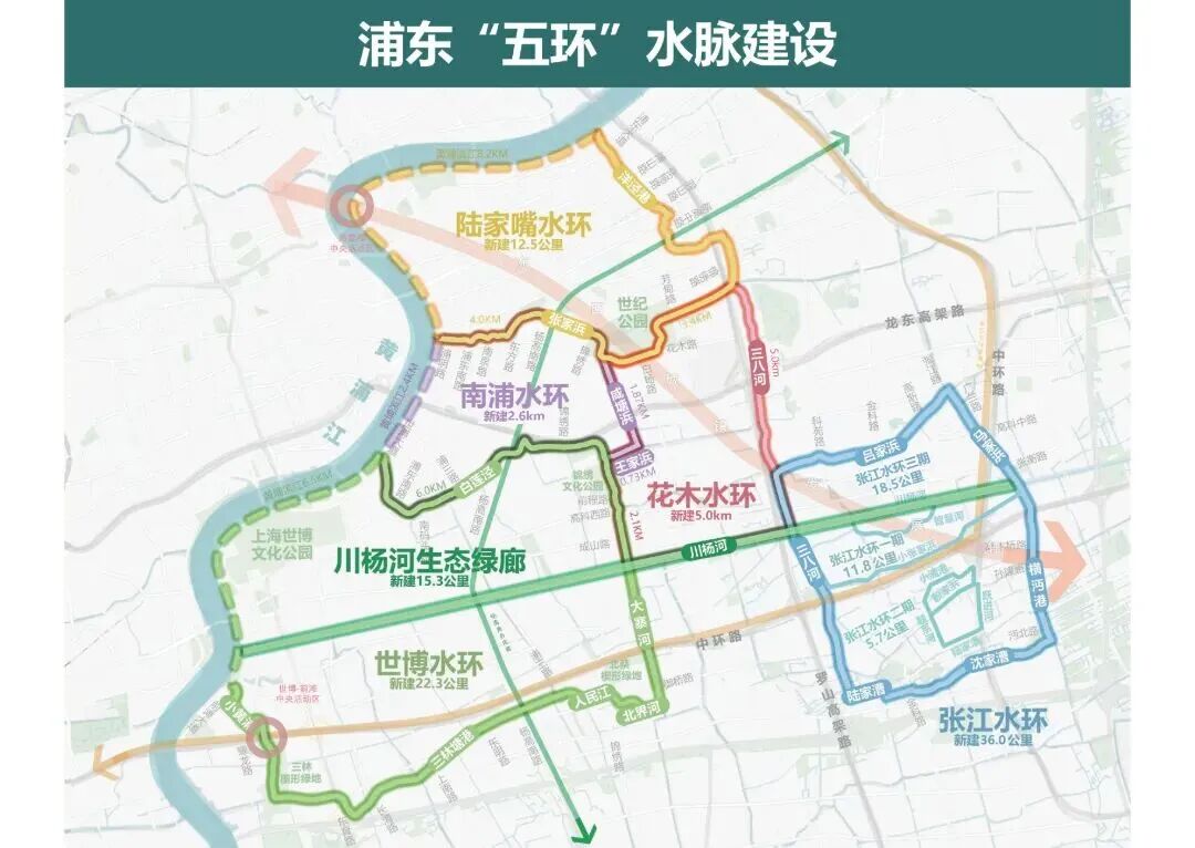 浦东“五环”水脉建设示意图