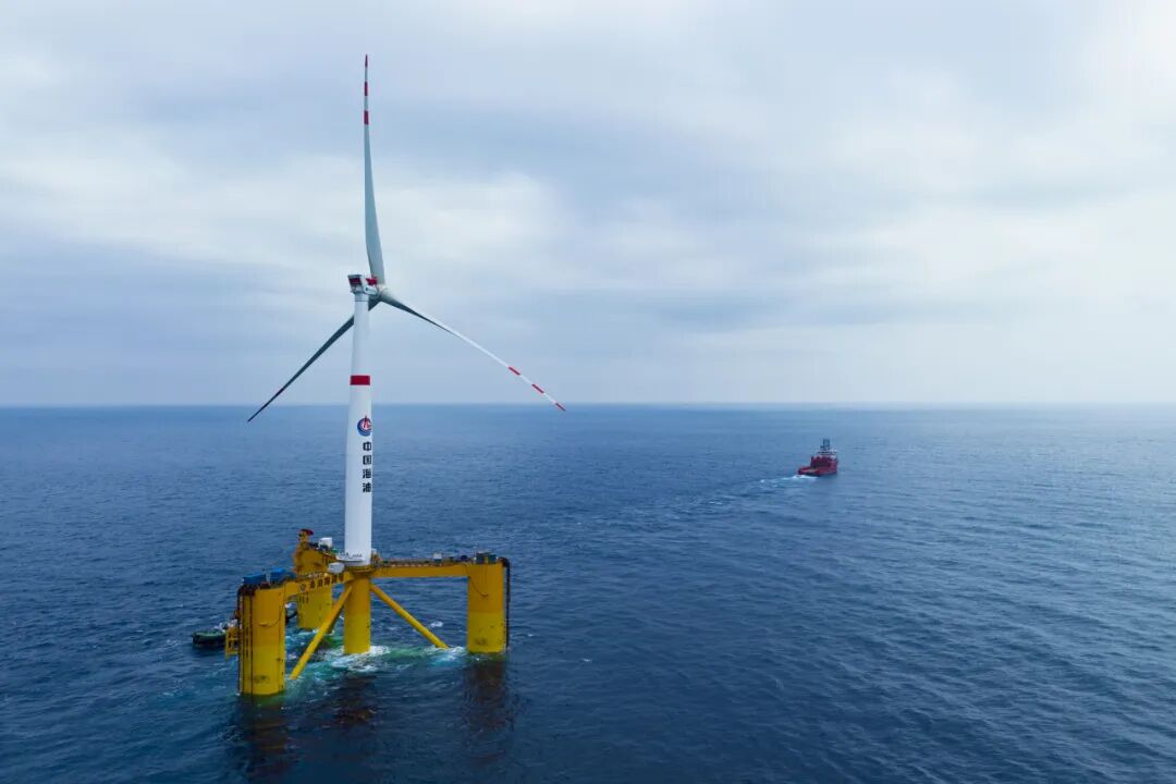 其中,“海油观澜号”是全球首座水深超100米、离岸距离超100公里的“双百”深远海浮式风电平台,并在2023年度国内十大科技新闻中名列第一。投运以来,“海油观澜号”累计发电量超5100万度,每年减少二氧化碳排放2.6万吨,开创了海上风电与海洋油气融合发展的全新模式。值得一提的是,2024年9月,该平台正面遭遇17级超强台风“摩羯”,风暴结束后迅速恢复并网发电,成为全球首个实证通过超强台风考验的漂浮式风电系统。