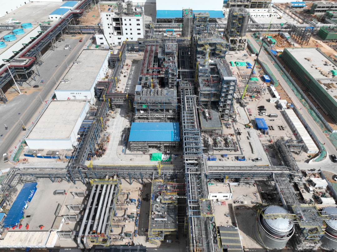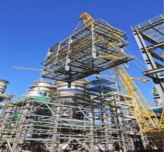 该项目推行工厂化预制,90%的钢结构由专用加工厂完成。在HDPE装置等多处框架施工中,采用地面预制成框、整体或分段吊装的模块化方法,减少脚手架搭设和高空作业,降低安全风险。531工程队在35kV变电所施工中,推行模块化精益施工,提前规划电缆敷设路径,提升二次接线精准度;配备电动叉车、等离子切割机等设备,替代人工作业,提高工效。3月28日,变电所一次受电成功。
