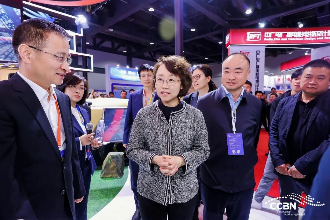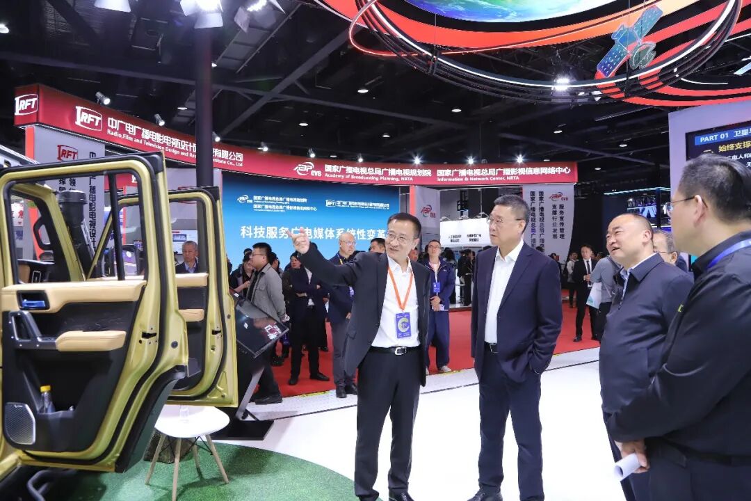 4月23日,曹淑敏和国家广播电视总局党组成员、副局长刘建国一行到中国卫通展台参观指导,中国卫通总经理马海全详细介绍了公司在广电卫星国产化、安全播出保障、技术创新应用等方面的实践成果,以及最新推出的“随车而行”卫星互联网+高清电视节目广电服务新场景等系列创新产品与应用。