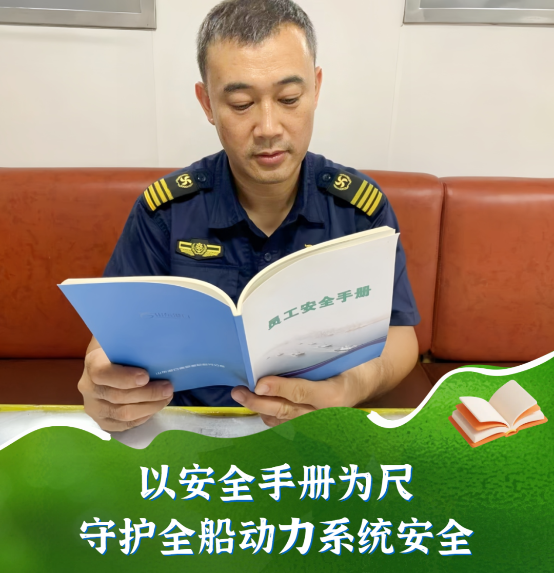 我常把《员工安全手册》带在身边,时常翻阅。作为轮机长,我需要对机舱里每一颗螺丝的状态做到心中有数。每次开航前,按照手册逐项检查,已成为我的习惯。通过读书,我深刻体会到:零事故就是最基本的底线。只有将安全融入日常、刻入本能,才能真正扛起这份沉甸甸的责任。