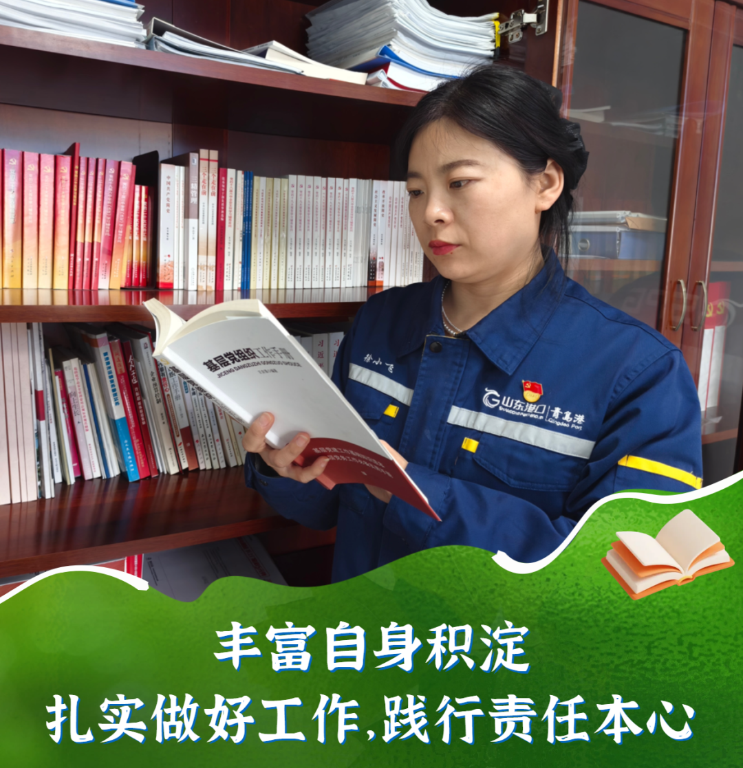 作为单证员,我每天要服务上百位集卡司机。起初面对繁琐流程和焦急等待,常感压力。工余时间,我和同事们共读劳模故事——那些扎根港口、耐心服务的前辈事迹,让我学会了在忙碌中保持从容。如今,我把每笔单证核得更细,把操作要点总结成小贴士分享给伙伴。读书使我温暖,更让我们的窗口充满理解与担当。