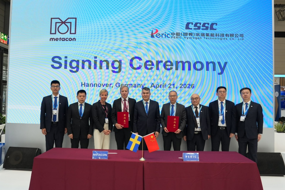 展会期间,中船集团与瑞典Metacon公司举行7.5MW碱性制氢设备项目合同签约仪式,并举办绿色智能产品技术现场推介等多场专题活动,主动高效开展产品技术服务推介和CSSC品牌国际化推广,持续吸引国际客户前来交流探讨合作机遇。在展会内接待拜访多家现有及潜在合作企业,深化既有合作共识、拓展合作新场景,为后续进一步提升共赢合作水平创造有利条件。