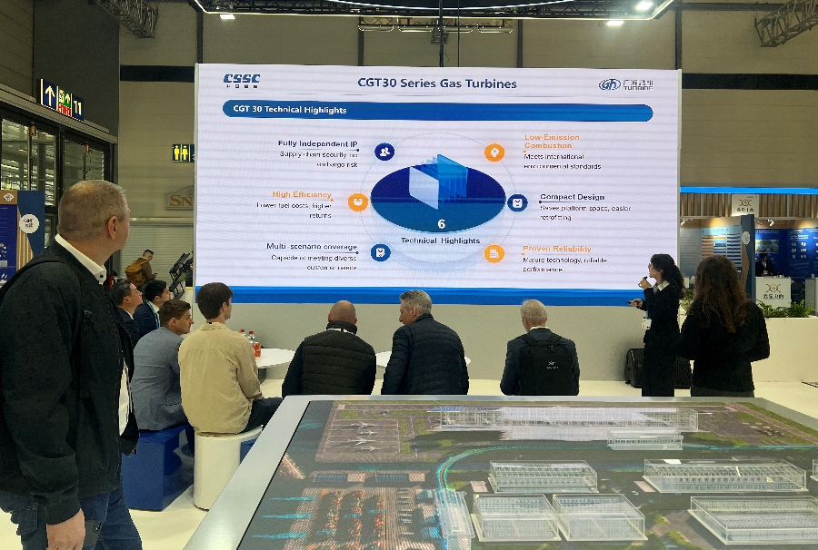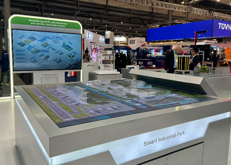 此次展会,中船集团紧扣全球工业低碳转型与智能升级前沿趋势和“前瞻科技”(Think Tech Forward)展会主题,聚焦能源基础设施和储能技术展区专题,高光展现绿色清洁能源装备、高端智能能源装备的硬核技术实力与系列创新成果,包括绿色低碳燃气轮机移动电站、大功率天然气发电机组、高性能绿色氢能装备、智慧工业园区整场解决方案、机场与轨道交通一体化智能解决方案、高端节能换热装备、氢能用钛基材、工业超低温制冷装备、智能监测装备等,直观呈现船舶先进技术积淀与研发制造实力在新兴产业领域的高效转化,充分彰显中船集团新兴产业的技术创新力和国际竞争力,积极助力新兴产业国际市场开发和高质量发展。展台采用现代工业质感设计风格和裸眼3D、多点触控、交互沙盘等高效展示手段,构建“内圆外方、数智共生”的展台形象,多维展现中船集团新兴产业的重要成果和未来前景,立体呈现CSSC的品牌实力、产品实力和科技实力。