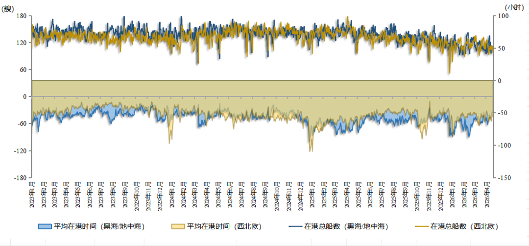图表5:2023年1月1日-2026年4月21日欧洲港口船舶在港时间表现走势