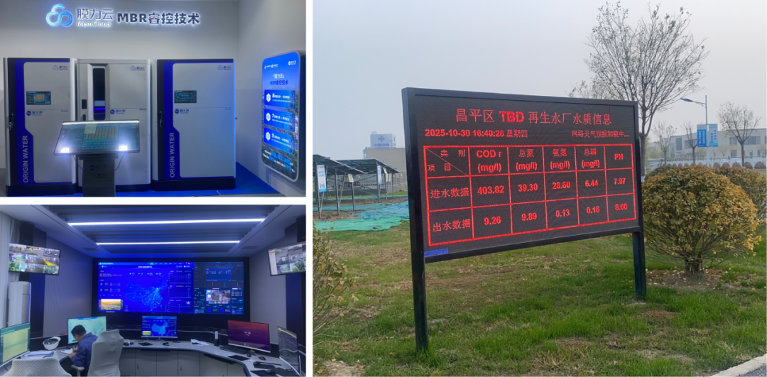 项目以 “膜力云”系统为核心,构建原水—工艺—出水全流程智能监测体系,对 COD、氨氮、总磷等关键指标高频自动采集分析,结合数字孪生实现数据可视化与趋势预警,大幅提升出水稳定性与精细化管控水平。