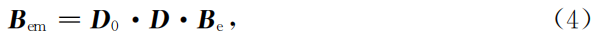 其中,K为感应系数矩阵。由于传感器固定在载体上,姿态变化与载体一致,因此Bem与地理坐标系下真实地磁场(Be)之间的关系如下: