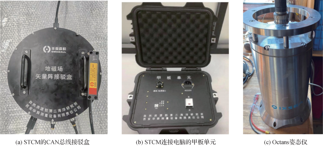国内方面,1993年中国科学院南海海洋研究所与日本合作,采用日本东京大学的STCM,在南海北部采集了约2500km的地磁三分量数据,并应用于南海北部海盆构造的磁性特征研究。2011年起,自然资源部第二海洋研究所开始试验STCM,于2013年初普利兹湾海域的29次南极科考中,在“雪龙”号破冰船上同步采集STCM数据和拖曳G-880磁力仪数据,尽管校准处理后STCM总场交点均方根差为±35.54 nT,与拖曳总场的偏差达到±47.56 nT,但是两者异常形态具有一致性,都能够反映海底的磁性结构。2022年初南极半岛海域的第38次南极科考中,自然资源部第二海洋研究所在“雪龙2”号破冰船上采集STCM数据,合成总场的交点均方根差低达±7.11 nT,可惜由于无法进行拖曳测量,难以评估数据外符合精度。
