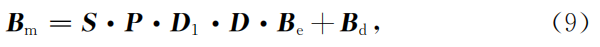 类比式(1),载体干扰场(感应磁场和固定磁场)的外部误差影响可按传感器内部误差作用方式一并对待,保留传感器的三轴非正交度(矩阵P)、灵敏度误差(对角矩阵S),零点偏移Bd包含固定磁场影响Bp,载体的磁感应影响K体现在载体到传感器的坐标旋转矩阵D1中,相应地,式(7)可改写为