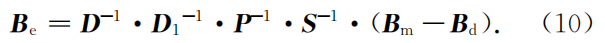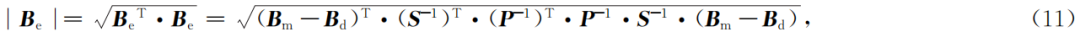 这样,由式(11)地磁总场约束反演S、P、Bd的独立参数只有9个,而不是式(8)M、Bd的12个,相对来说,增加了约束条件,有利于提高载体磁补偿参数的精度。但是,与式(8)不同,式(11)的反演解算既避开了姿态数据,也避开了3个安装误差参数的解算,S、P、Bd的9个独立参数只能用于地磁总场的补偿计算。