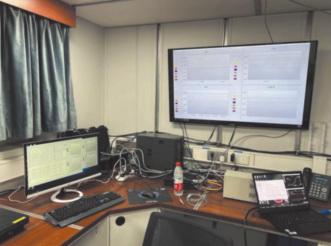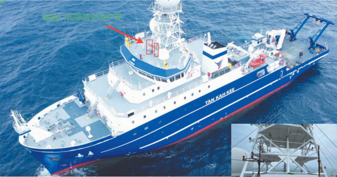 2022年5—6月的航次主要测试多通道数据同步采集软件的功能和不同安装位置的STCM工作状态,希望既能减弱主甲板以下船体的磁性影响,又能避免航海雷达辐射对磁通门传感器的影响。这为2023年3月9—24日的航次确定了STCM安装于驾驶台上面尽可能高、又在雷达辐射盲区的合适位置(图1)。