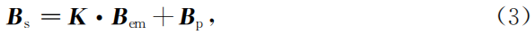 Bs包括载体固定磁场Bp和载体因姿态变化被地磁场感应磁化的磁场,与地磁场成线性关系: