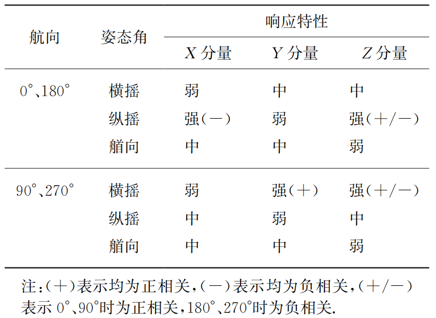 表1 地磁三分量对姿态的响应特性