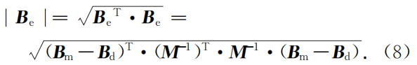 在式(7)两边各自点乘,利用旋转矩阵的特性D-1=DT,可以得到地磁总场