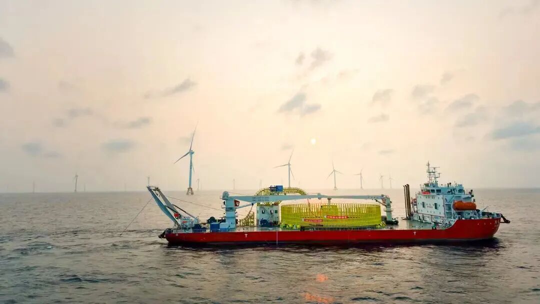 4月24日,在阳江海域,一条重达13700吨、总长超180千米的“水下巨龙”稳稳沉卧海底。由中国能建广东院EPC总承包建设的三峡阳江青洲五、青洲七海上风电场海缆集中送出工程,顺利完成世界电压等级最高、输送容量最大、导体截面最大的交联聚乙烯直流海缆敷设。