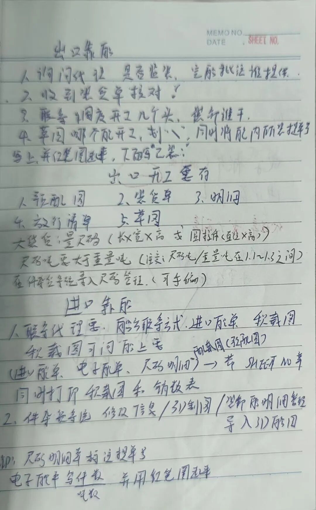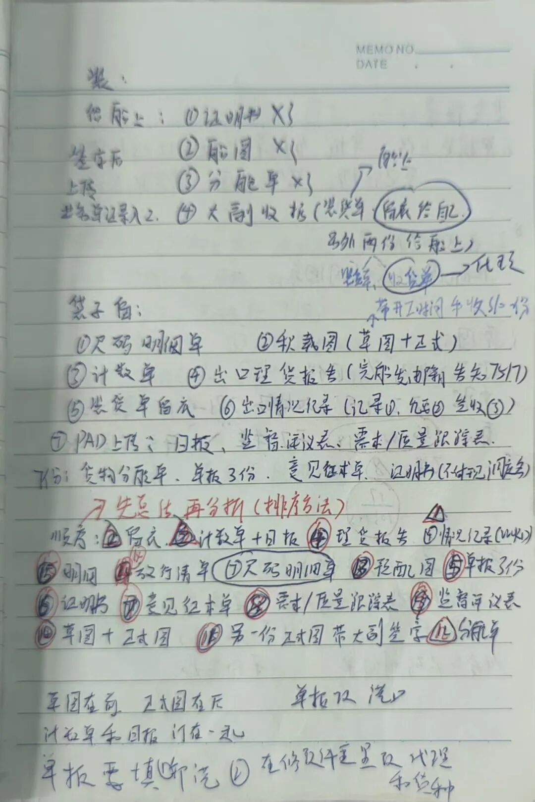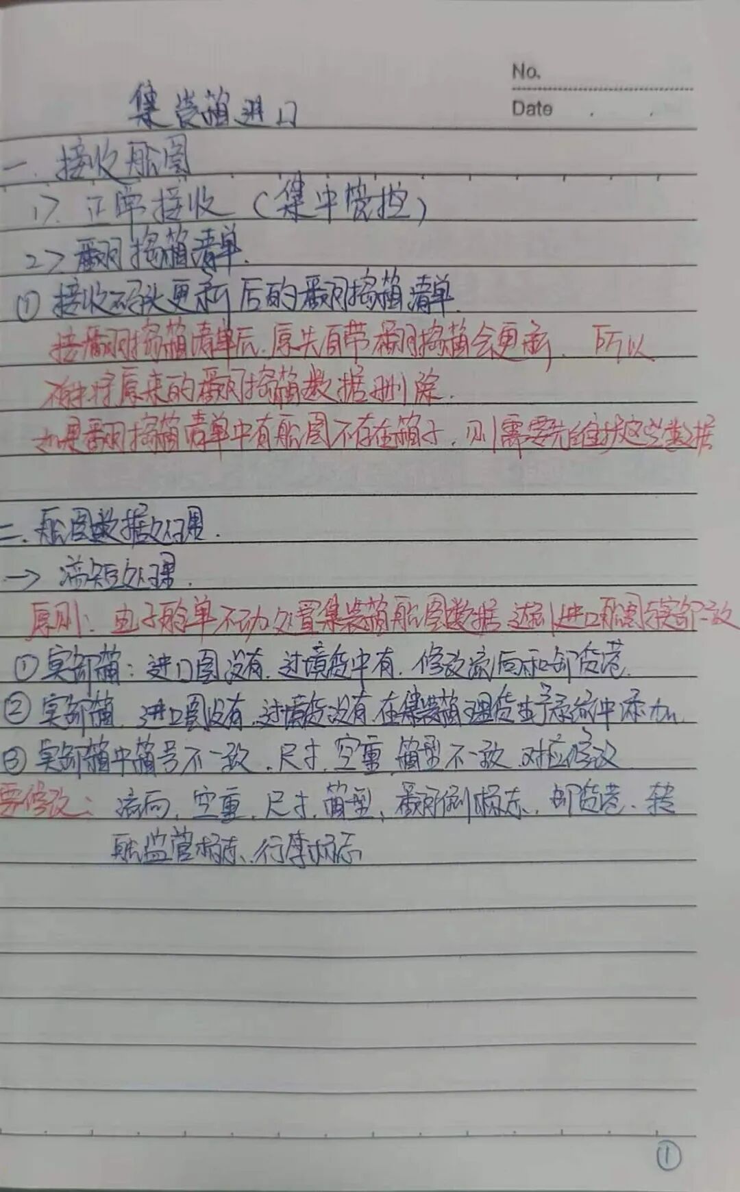 常年守在理货一线,我习惯随身带本,遇事即记、当日整理。寻常理货流程、货种参数、作业规范,如实记下;遇有疑难杂症、沟通要点、易错环节,便用红笔着重圈点。现场手记力求简洁,收工后再细细梳理,把零散经验归集成类,去繁就简、留存要害。不贪花哨,只重实用,让每一页笔记都贴合现场、服务实操,既是工作备忘,也是立身之本。