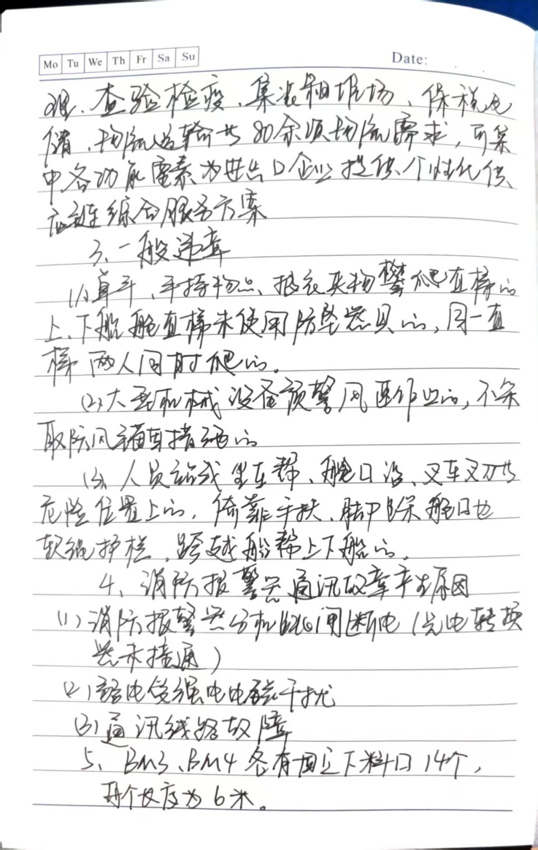 我的习惯是随身揣一本“口袋小本子”,巴掌大小,方便随时掏出来记。他将内容按需分块:企业文化标语、各泊位参数、常见隐患清单、装卸货种化学特性等,不追求工整排版,但求实用。现场听到老师傅讲要点,立马记下来。小本子还设了“易错页”,专门记录自己曾忽略的细节,用简单符号标记重点。下班前翻阅当天新记内容,周末再统一分类整理。