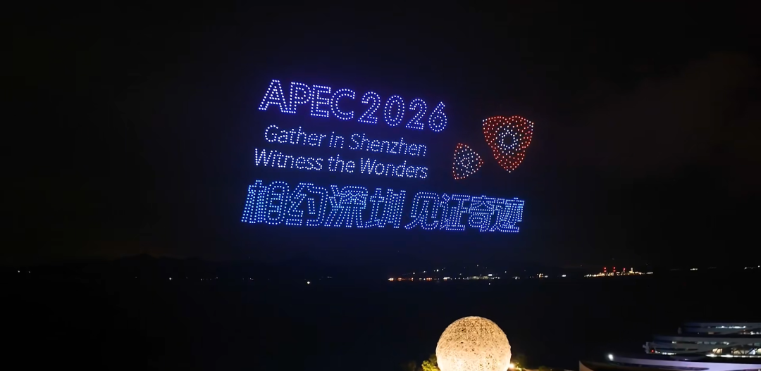 当晚,“潮涌蛇口·光绘湾区——Star Over Prince Bay ”主题无人机光影秀闪耀珠江东岸,为现场嘉宾及市民游客呈现了一场“空中智媒”视觉盛宴。2000架无人机编队光影秀浪漫登场,以夜空为幕、光影为笔,围绕“HELLO APEC”“2026·深圳夏日惊喜”“魅力南山”“前海之韵”“潮起蛇口”“十年辉煌”等核心篇章,生动勾勒蛇口邮轮母港十年发展历程、深圳文旅风貌与湾区发展愿景,实现科技与艺术的完美交融,成功打造出深圳低空经济与文旅融合的示范场景,也为本次启幕活动画上了圆满句号。