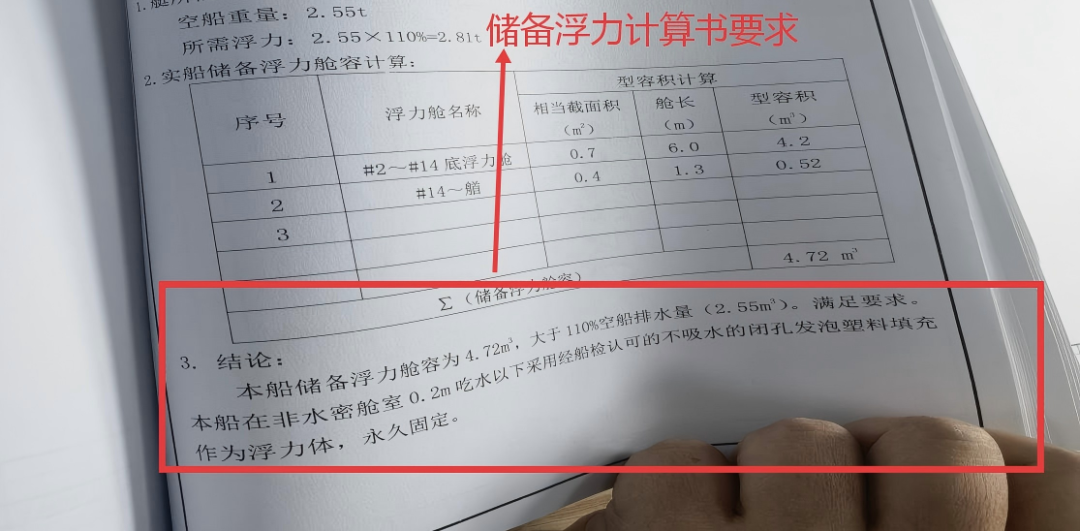 船舶储备浮力计算书照片。温州海事局 母东标 摄