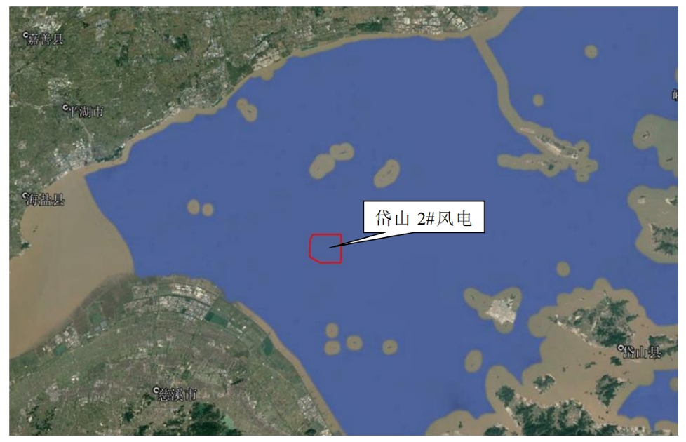 报告书显示,岱山2#海上风电场区出位于浙江省舟山市岱山县杭州湾海域,七姊八妹岛北侧,风电场场址东西长约6km,南北长约5km,场址面积约30km²,场址中心点离岸距离约20km,风机离岸距离约15km,水深10.1~10.8m。
